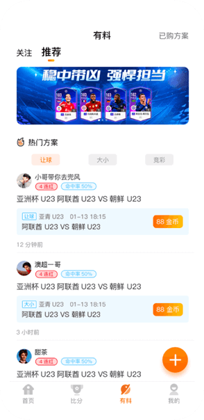 认证用户可发布相关赛事比分预测,支持设置付费,系统自动记录用户预测准确度。